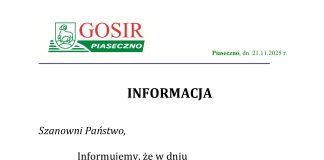 Zamknięcie basenu rekreacyjnego (mały basen) w dniu 22.11.2025 od godziny 20:30