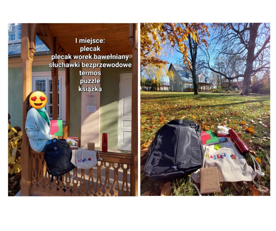 I miejsce – publikacja zwycięskiej fotografii na Facebooku Gminy Piaseczno wraz z podaniem imienia i nazwiska autora, jako zdjęcia w tle (przez minimum tydzień) oraz nagrody rzeczowe: plecak, plecak-worek bawełniany, termos, książka „Piaseczno kobietami słynące”, puzzle, słuchawki bezprzewodowe.