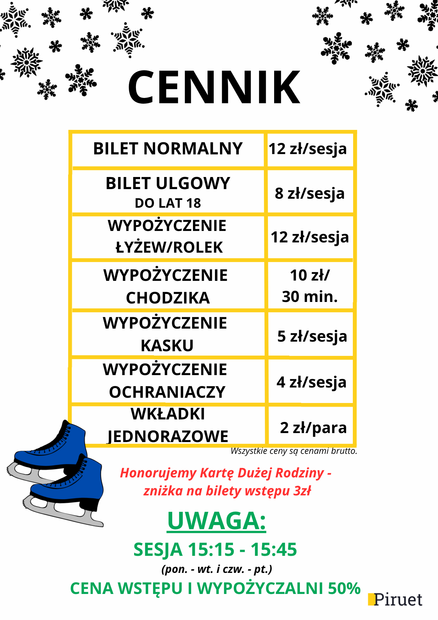 Cennik lodowiska w Piasecznie oraz wypożyczalni: