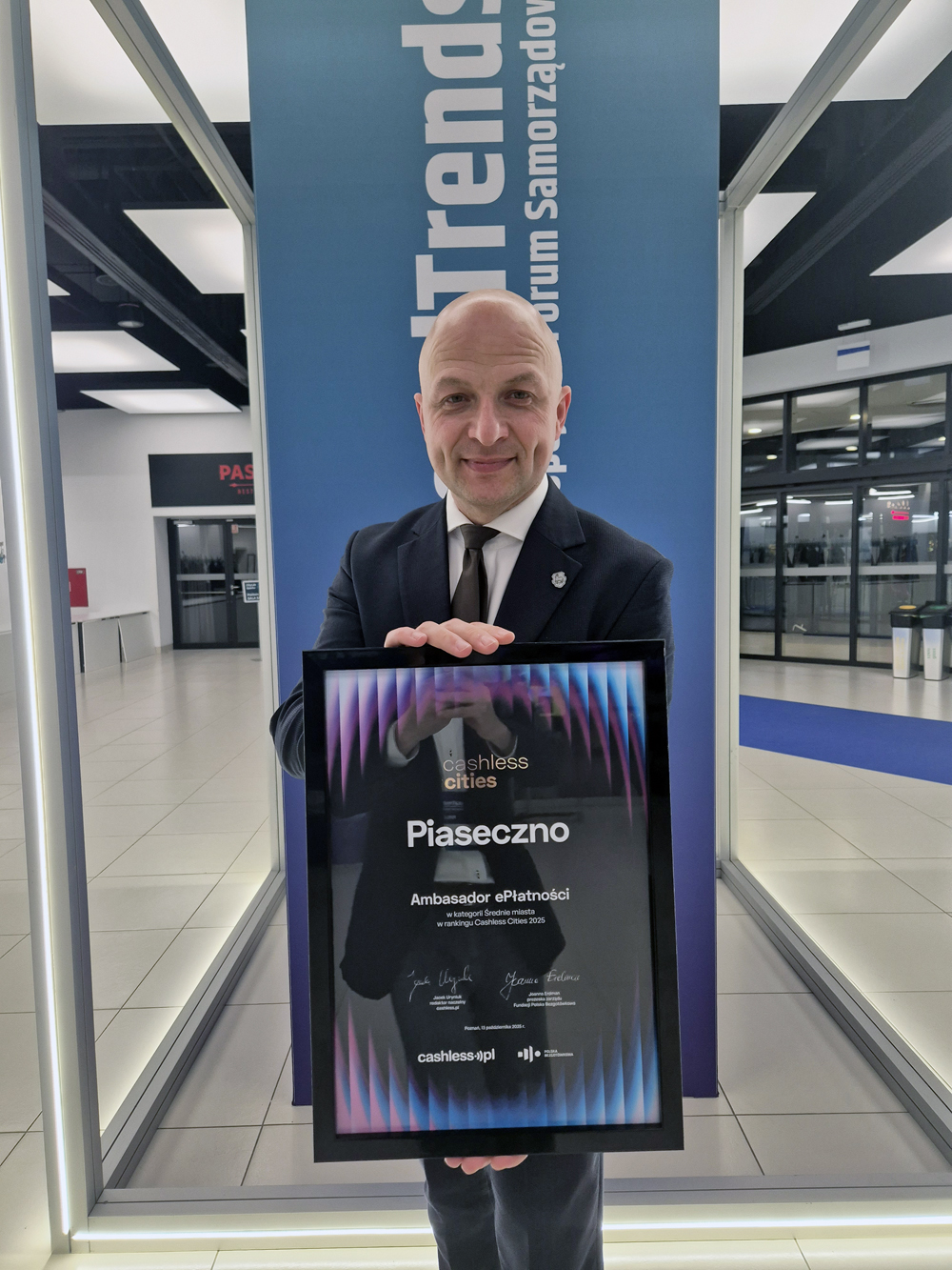 Nagrodę Burmistrz Daniel Putkiewicz odebrał z rąk Joanny Erdman – Prezeski zarządu Fundacji Polska Bezgotówkowa oraz Jacka Uryniuka – redaktora naczelnego portalu cashless.pl, na Europejskim Kongresie Samorządowym, który odbył się w dniach 13-14 października 2025 roku, na terenie Międzynarodowych Targów Poznańskich.