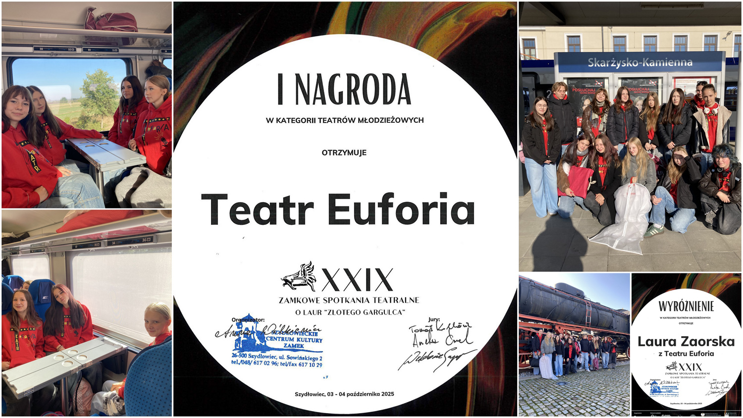 Teatr Euforia reprezentujący Piaseczno, odniósł wspaniały sukces na Ogólnopolskim Festiwalu Teatralnym w Szydłowcu, zdobywając PIERWSZĄ NAGRODĘ! Dodatkowo jury festiwalu przyznało wyróżnienie aktorskie dla Laury Zaorskiej, doceniając jej talent. Gratulujemy całemu zespołowi!