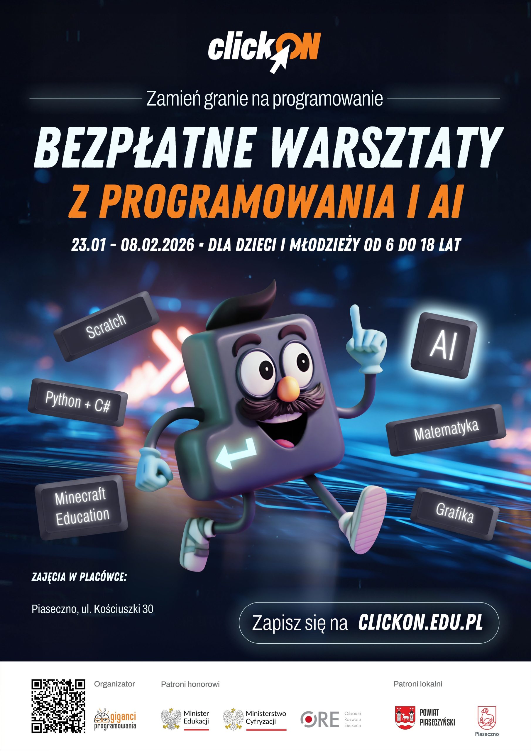 Giganci Programowania zapraszają uczniów na wyjątkowe warsztaty w ramach ogólnopolskiej akcji edukacyjnej „clickON – zamień granie na programowanie”.