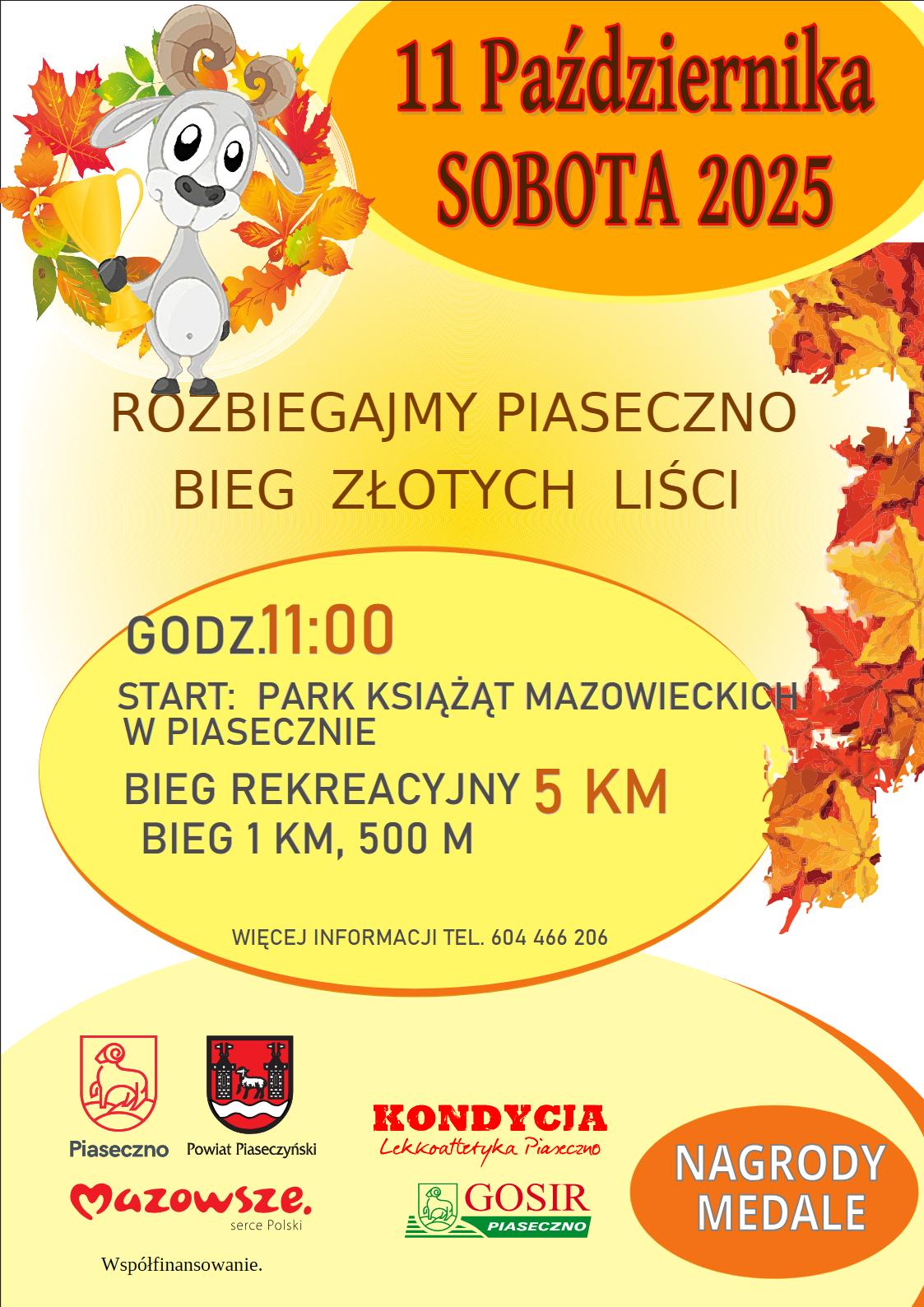 Regulamin: www.kondycja.com.pl/aktywnosci/bieg-zlotych-lisci/#Regulamin