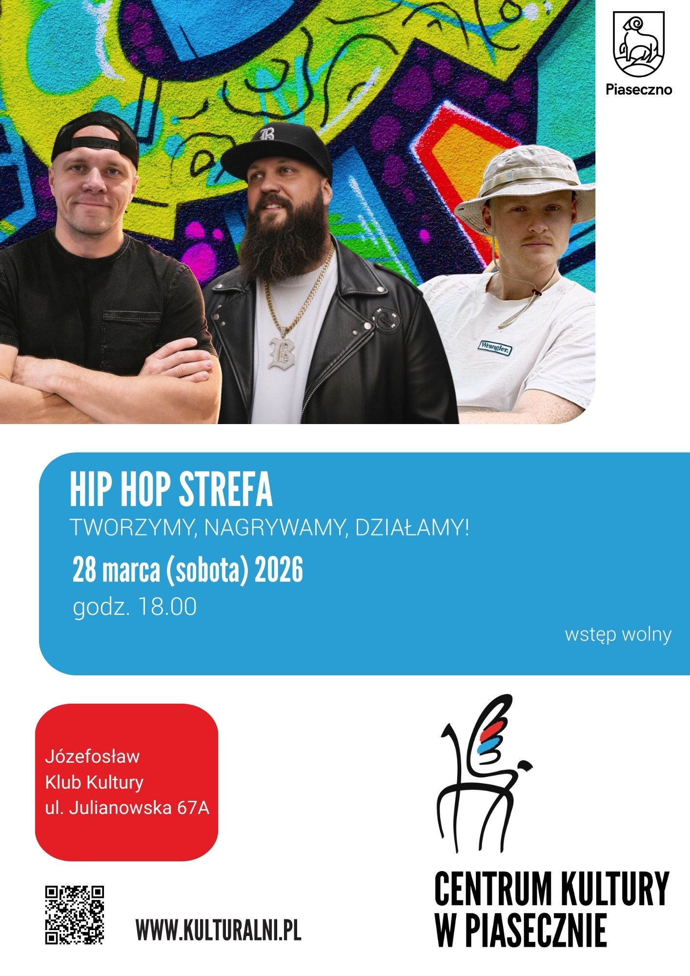 28 marca 2026 roku o godz. 18.00 odbędzie się spotkanie w ramach cyklu HipHop Strefa – Tworzymy, nagrywamy, działamy! Wstęp wolny. Prowadzący: Jerzy “Yuro” Pieniążek – raper, muzyk, inżynier dźwięku; Piotr “Poison” Plichta – artysta sceniczny, twórca projektu „JednoŻycie”, specjalista od video. Gość: NESTER. Miejsce: Józefosław, Klub Kultury, ul. Julianowska 67A.