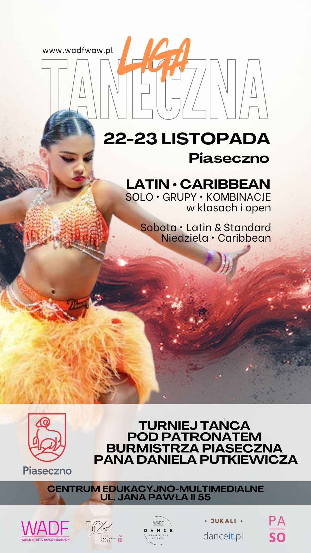 W dniach 22-23 listopada 2025 roku w Centrum Edukacyjno-Multimedialnym w Piasecznie odbędzie się Turniej Tańca, w którym weźmie udział prawie 400 tancerzy z całej Polski.