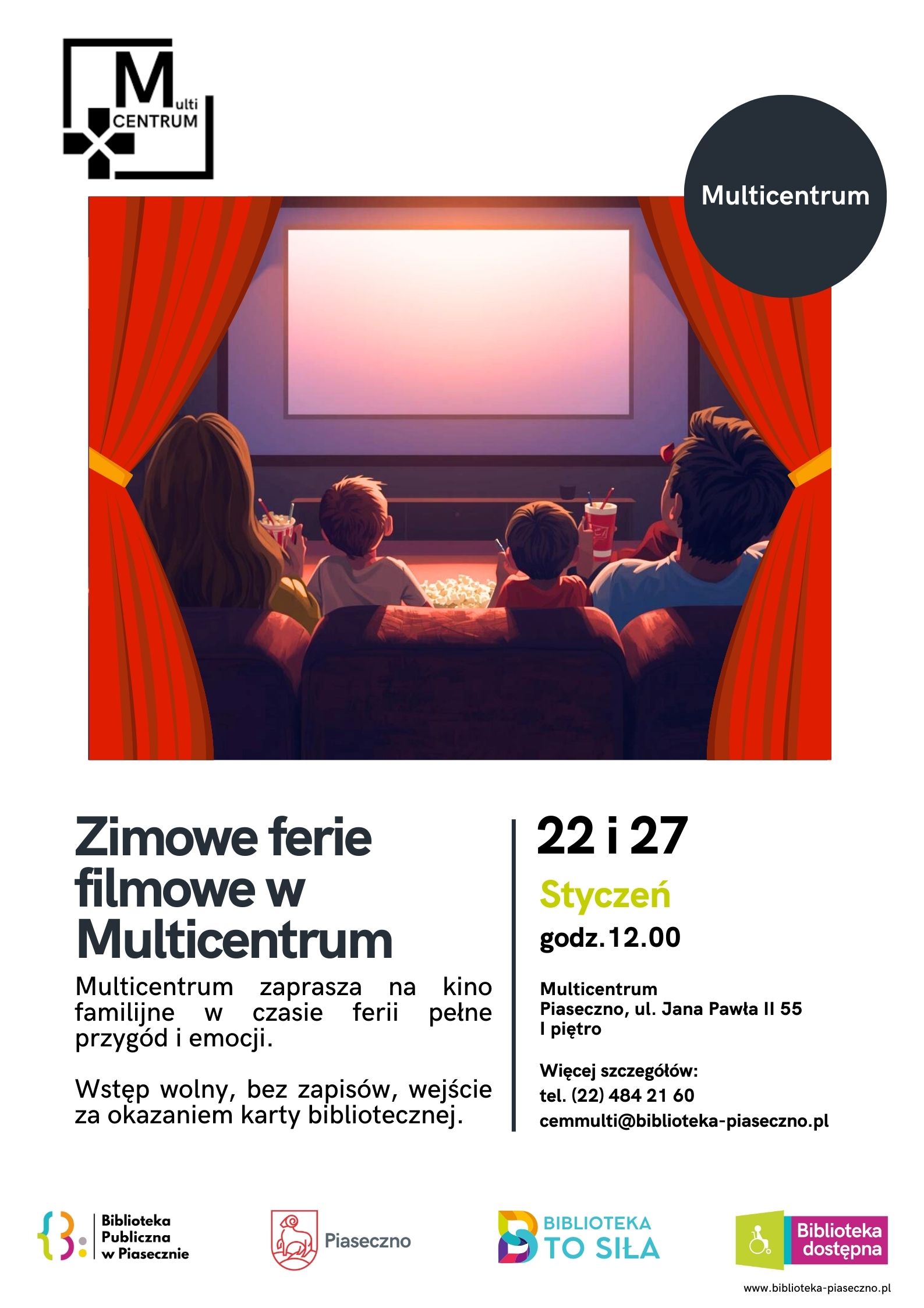 Multicentrum serdecznie zaprasza dzieci, rodziców, babcie i dziadków na „Zimowe ferie filmowe”.